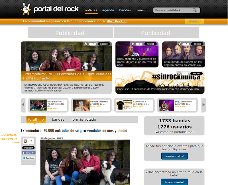 Renovación completa de portaldelrock.com, tanto en diseño como en software. Hemos